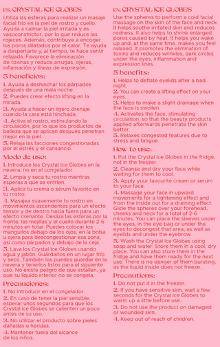 Perfectos para todo tipo de piel, los Ice Globes alivian el cansancio, reducen bolsas en los ojos y potencian la absorción de tus productos cosméticos. Además, su uso regular proporciona una sensación relajante y energizante, ideal para tu rutina beauty.