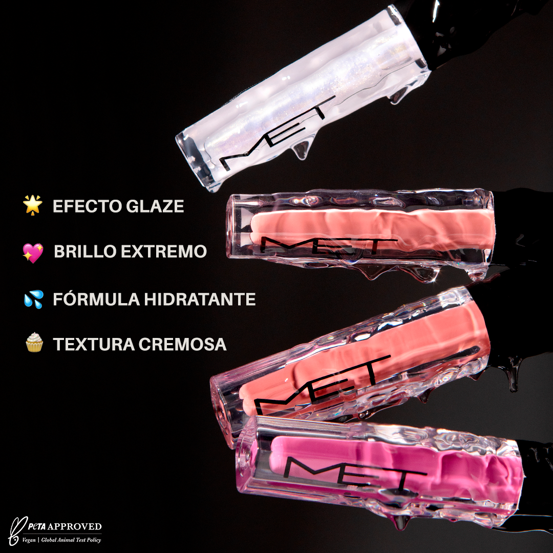 Su fórmula es ligera con un mix de emolientes que dan un efecto gel glaseado en los labios.