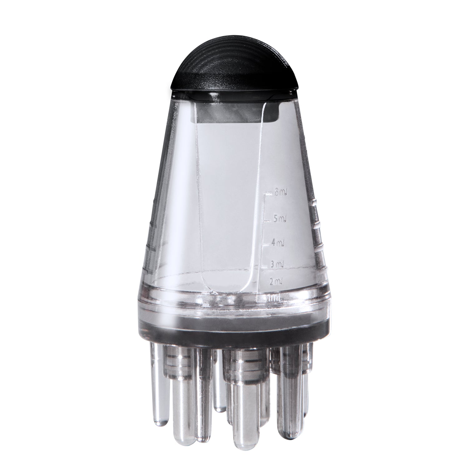 Aplica tus aceites o tratamientos capilares de manera uniforme con este masajeador diseñado para el cuero cabelludo. Su estructura de PC y acero inoxidable permite una dosificación precisa mientras estimula la circulación con un suave masaje.