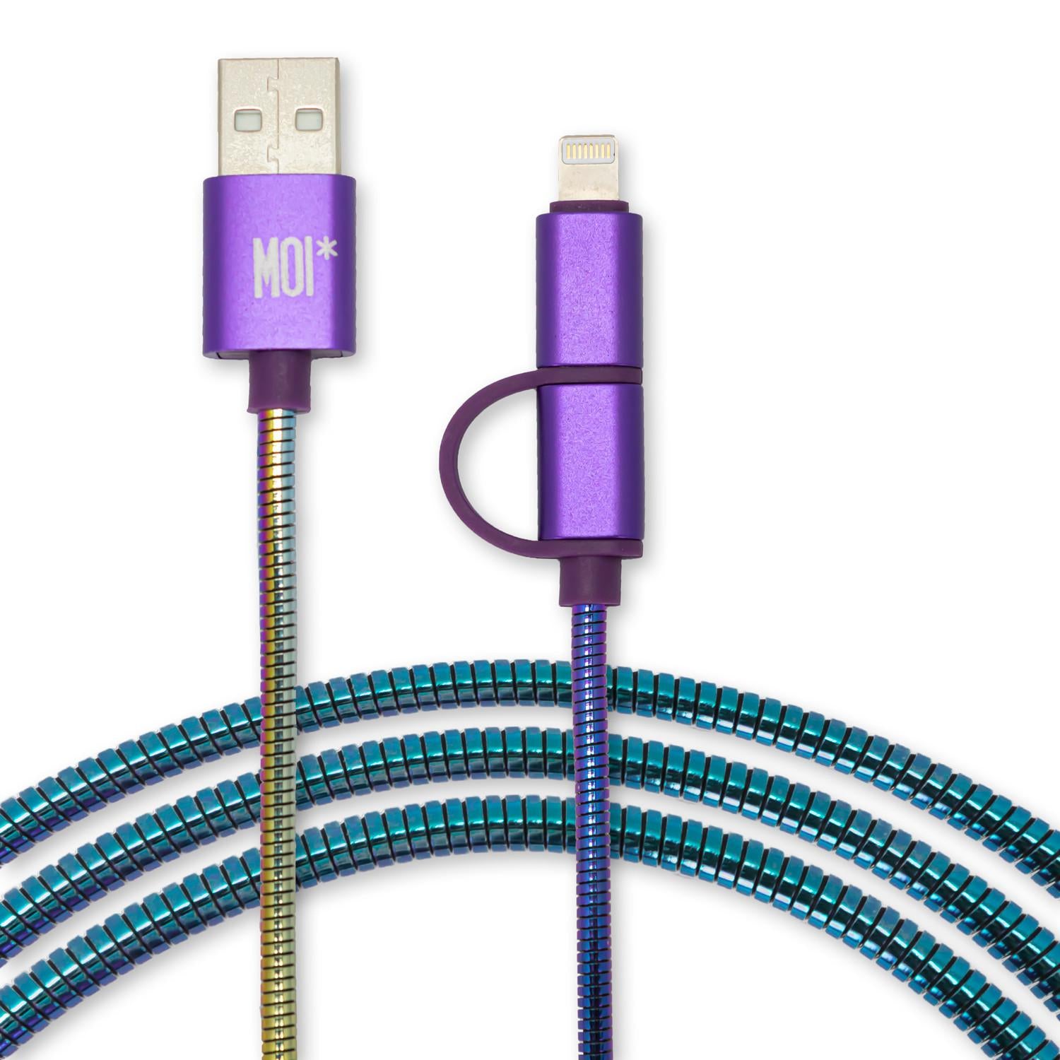 Cable USB Micro - Lightning de MOI * es un cable de 1m con doble puerto micro USB y para Android y puerto lightning para tu iPhone o iPad.