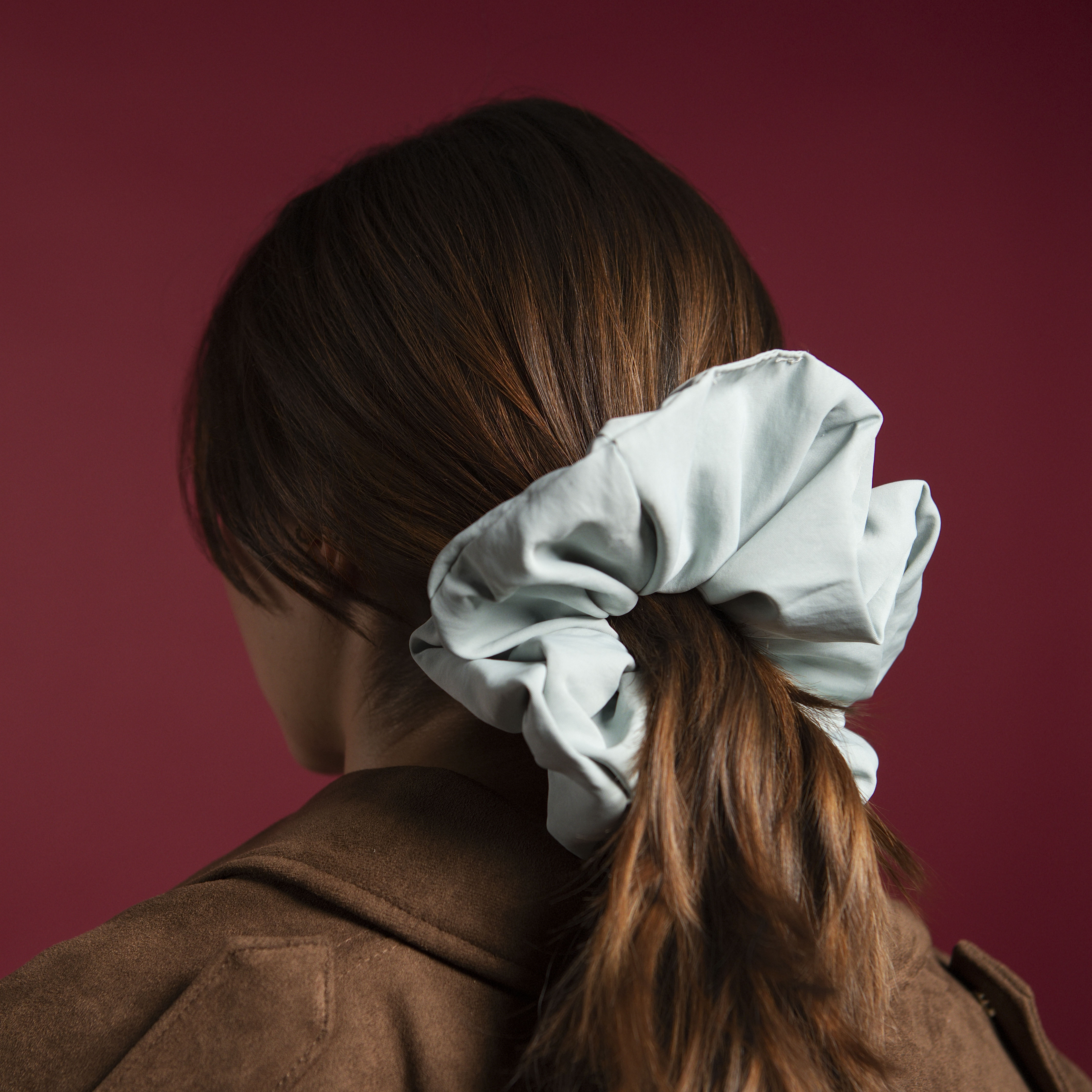 Scrunchie tamaño XL disponible en 3 colores. Puedes usarlo para coletas, moños y semi-recogidos. Perfecto para darle un toque divertido a tus peinados.