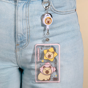 Llavero tarjetero con cable retráctil y charm capybara, compacto y práctico para llevar tus tarjetas y llaves siempre a mano.