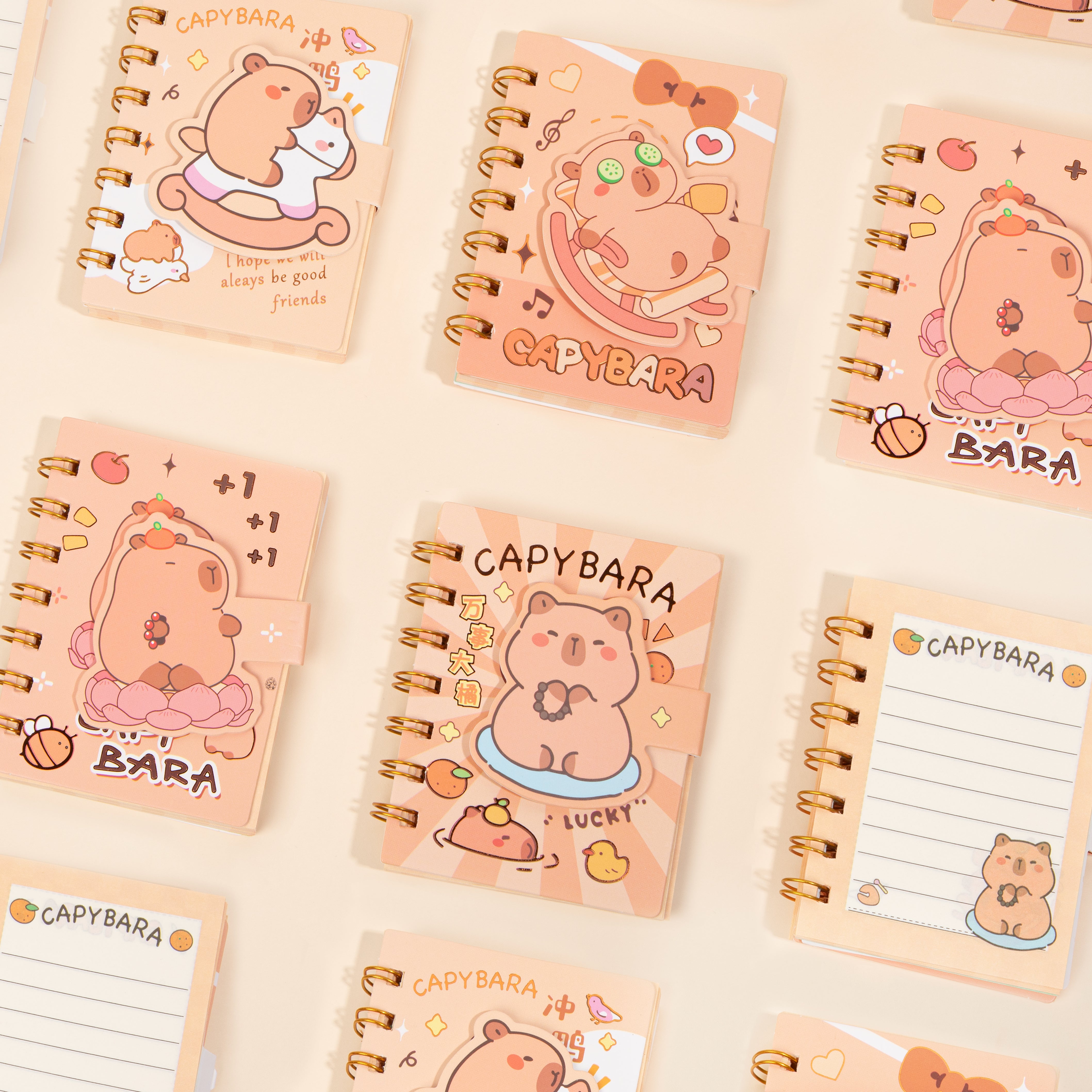Cuaderno de notas con anillas tamaño mini. ¡77 páginas de pura diversión! Toma notas con tus capybaras. Perfecta para apuntar ideas, dibujar y mucho más. Descubre los 4 diseños disponibles.