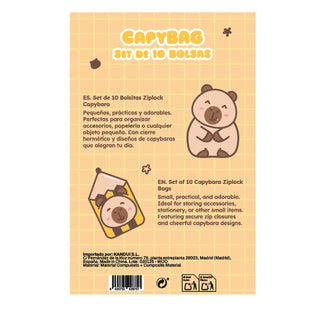 Set de 10 Bolsitas Ziplock Capybara pequeñas, prácticas y adorables.