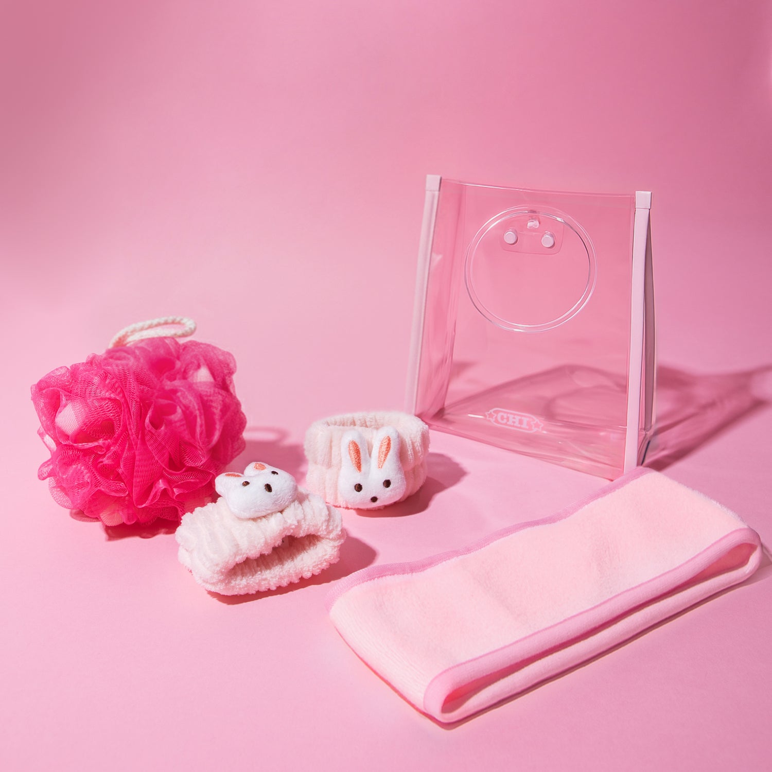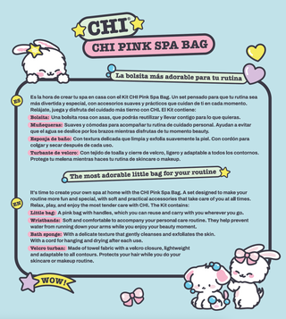 Es la hora de crear tu spa en casa con el Kit CHI Pink Spa Bag. Un set pensado para que tu rutina sea más divertida y especial, con accesorios suaves y prácticos que cuidan de ti en cada momento.