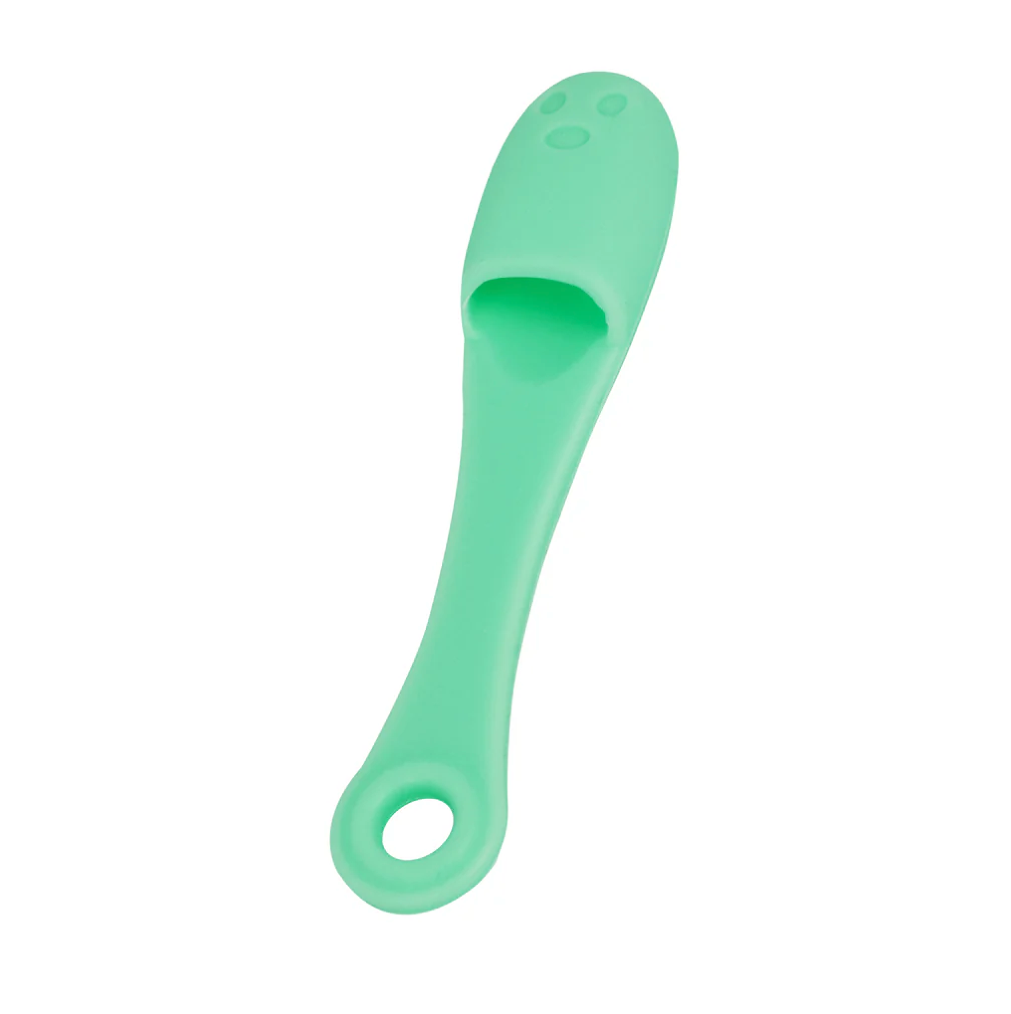 Introduce el dedo por el hueco de la parte trasera del limpiador de silicona para frotar y limpiar la piel de las zonas de más difícil acceso para aristas de la nariz o alrededor de los labios.