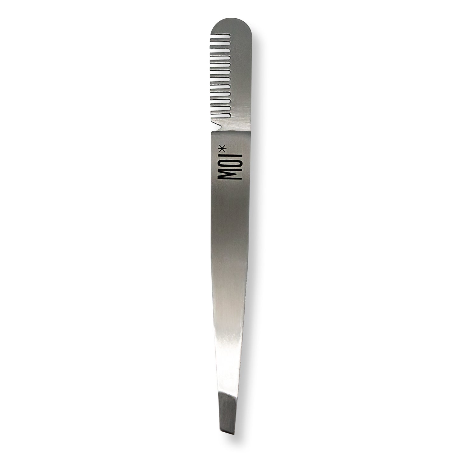 Pinzas de Depilar con Peine de Cejas de MOI* es un accesorio multiusos para cejas dotado de una pinza depilatoria con punta biselada de alta precisión y un peine en el extremo opuesto para disciplinar los pelos de las cejas. Realizado en acero inoxidable.