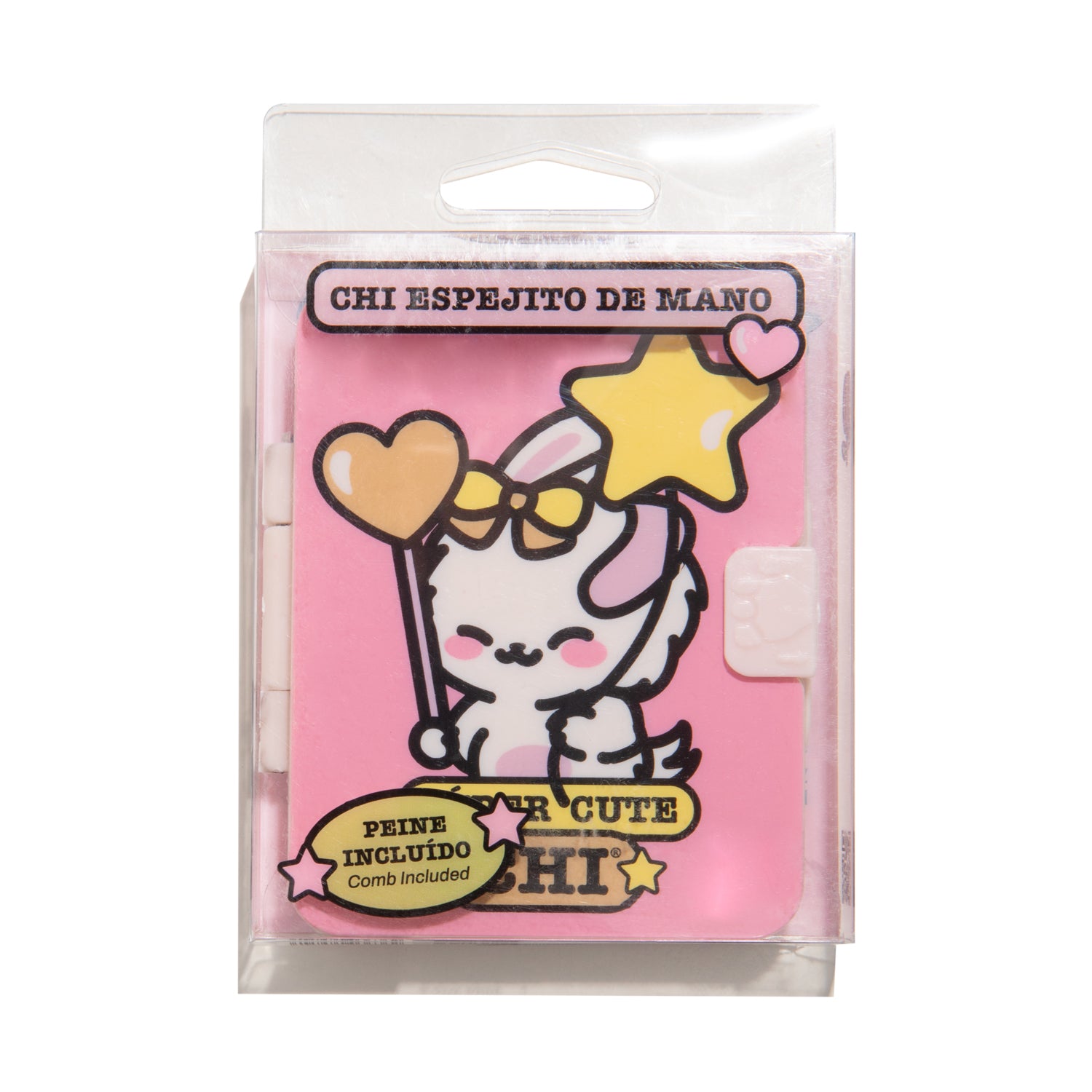 Descubre la magia de Chi's Pocket Vanity, el accesorio más adorable y funcional que acompañará tu día a día. Este encantador espejito compacto incluye un peinecito.
