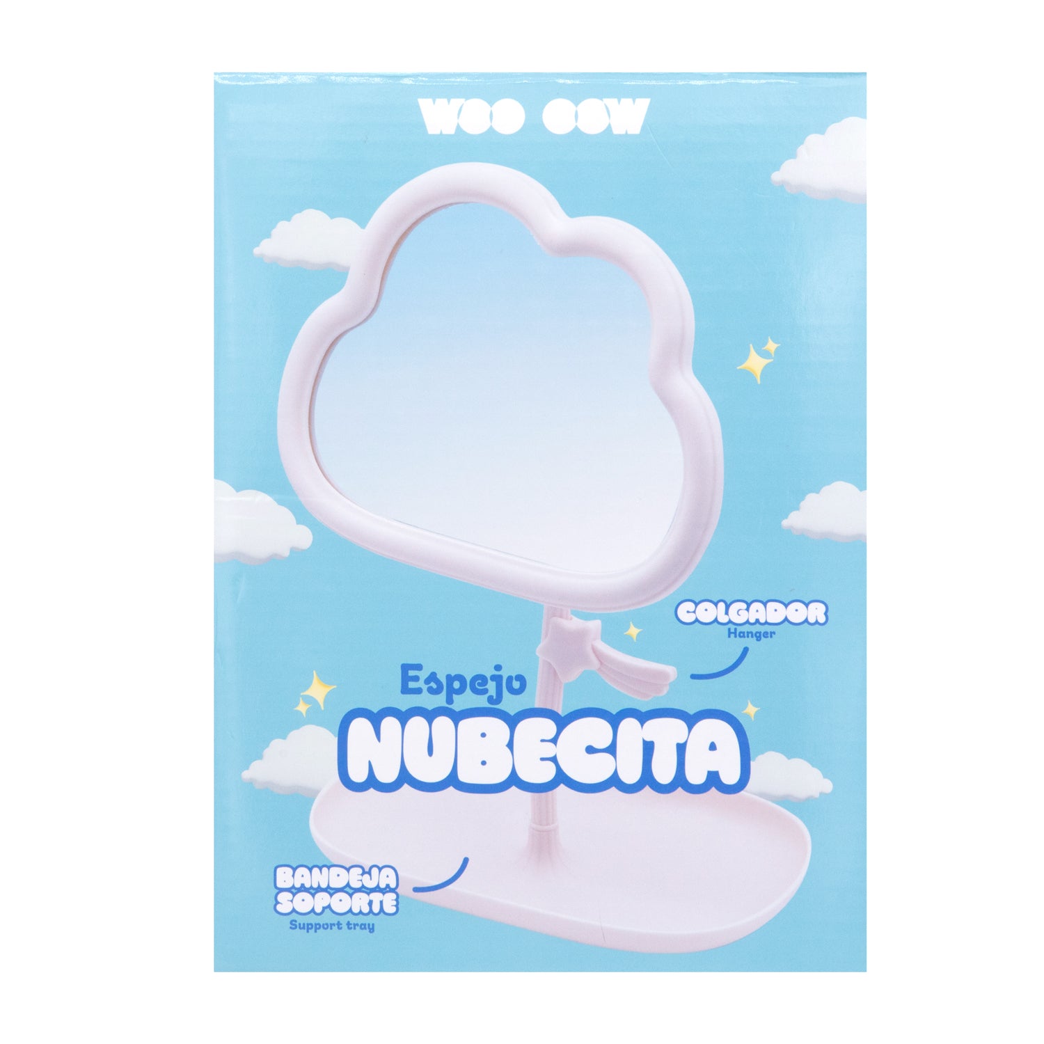 Espejo en forma de nubecita con base, y colgador para colocar tus joyitas. Perfecto para realizar tus rutinas de cuidado facial y maquillaje a la vez que decoras tu tocador.