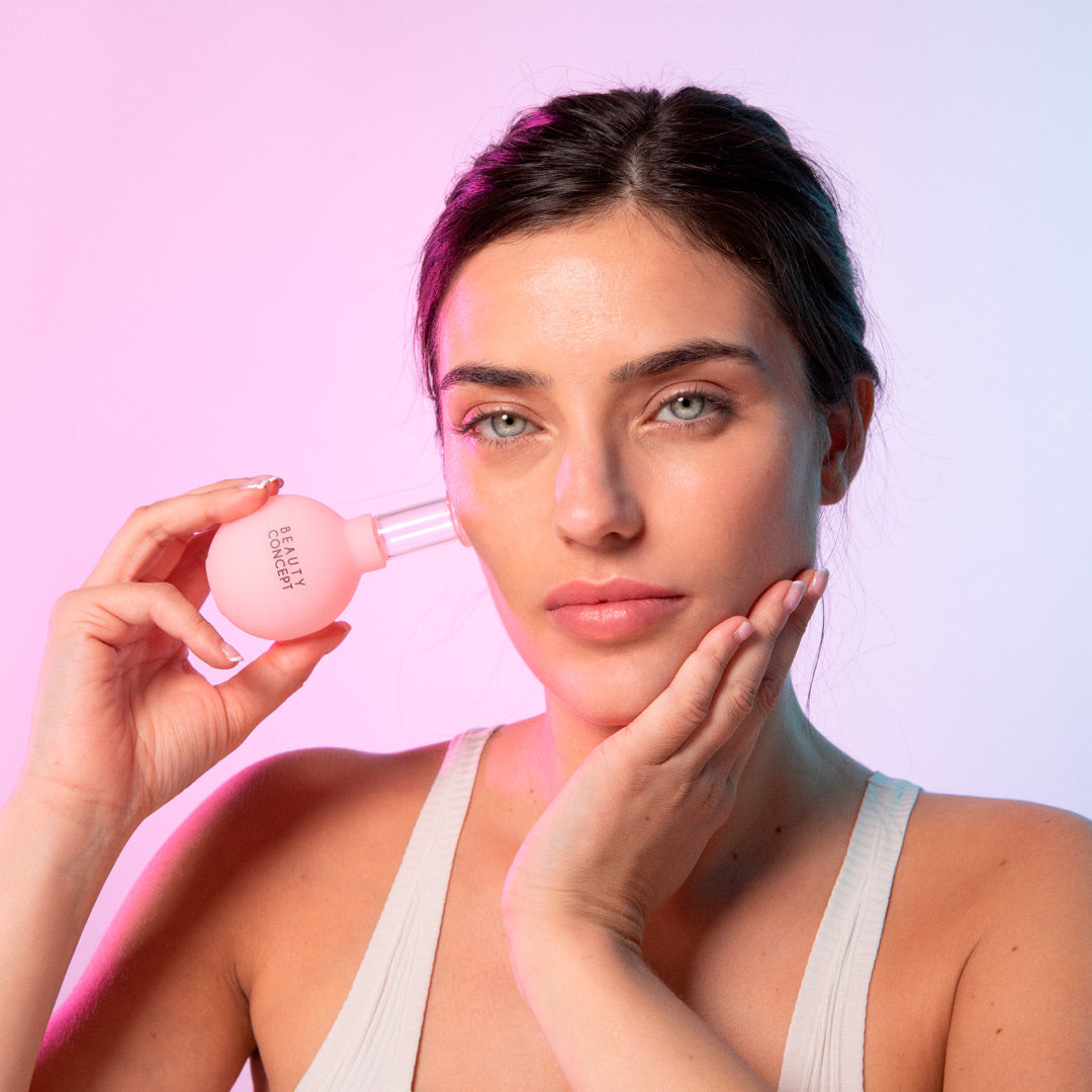 Son dos ventosas de silicona con una boquilla de vidrio diseñadas para realizar masajes sobre tu rostro y cuerpo que estimulan la circulación y eliminan toxinas. También conseguirás una piel más tersa y volver a "levantar" los músculos que notes más flácidos. Usando esta técnica de succión, podemos guiar los nutrientes a la superficie de la piel, revitalizándola y refrescándola, a la vez eliminando las toxinas y mejorando la salud y la belleza de la tez.