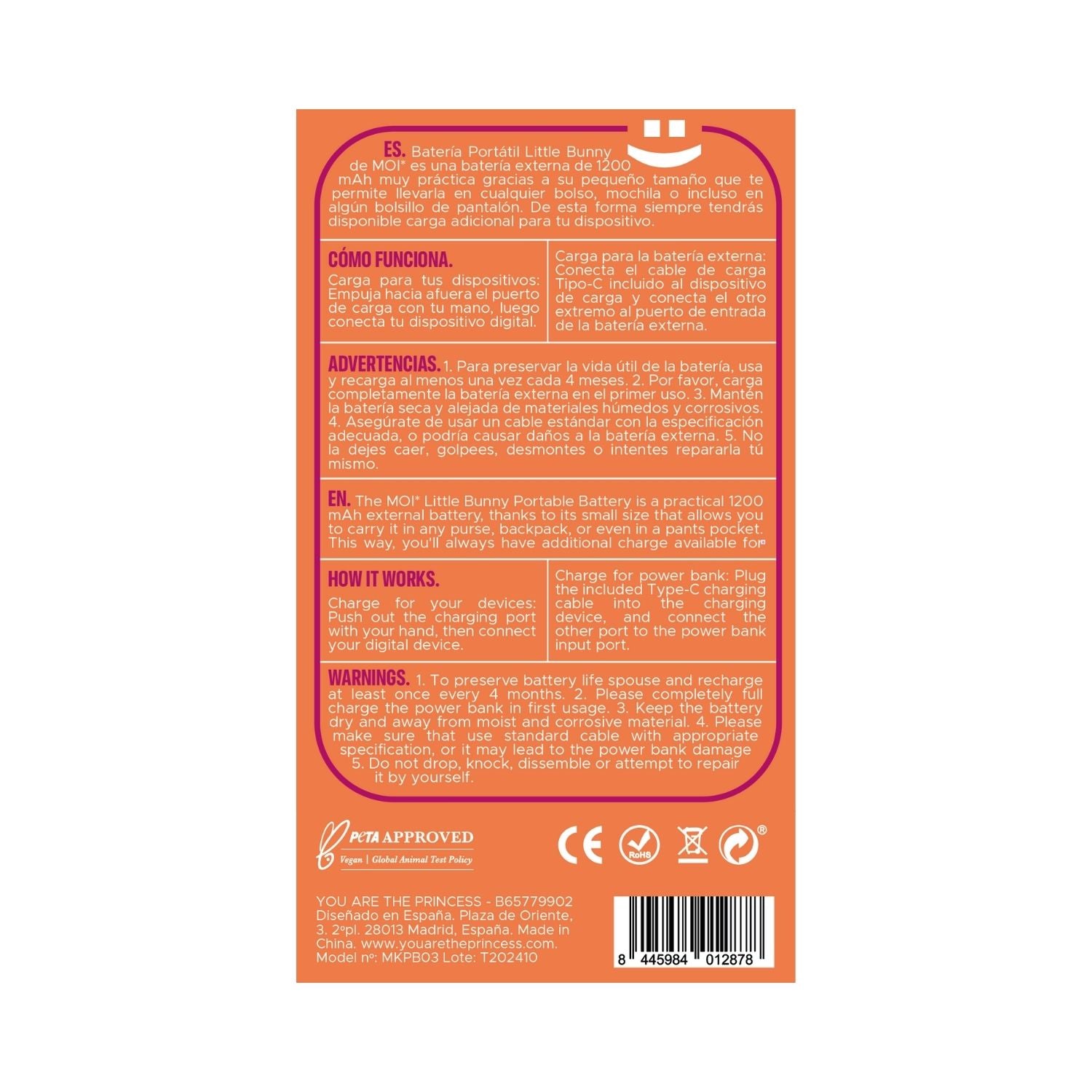 Batería Portátil Little Bunny de MOI* es una batería externa de 1200 mAh muy práctica gracias a su pequeño tamaño que te permite llevarla en cualquier bolso, mochila o incluso en algún bolsillo de pantalón. De esta forma siempre tendrás disponible carga adicional para tu dispositivo.