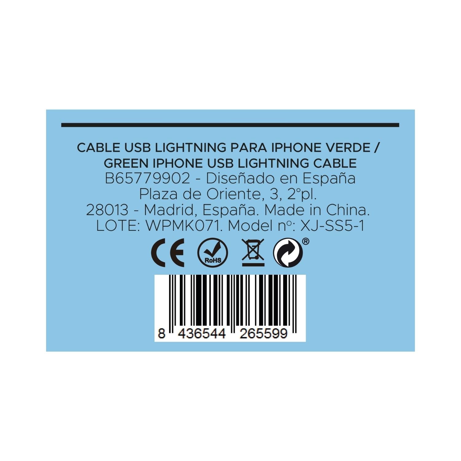 Cable USB con conector Lightning Iphone de MOI*