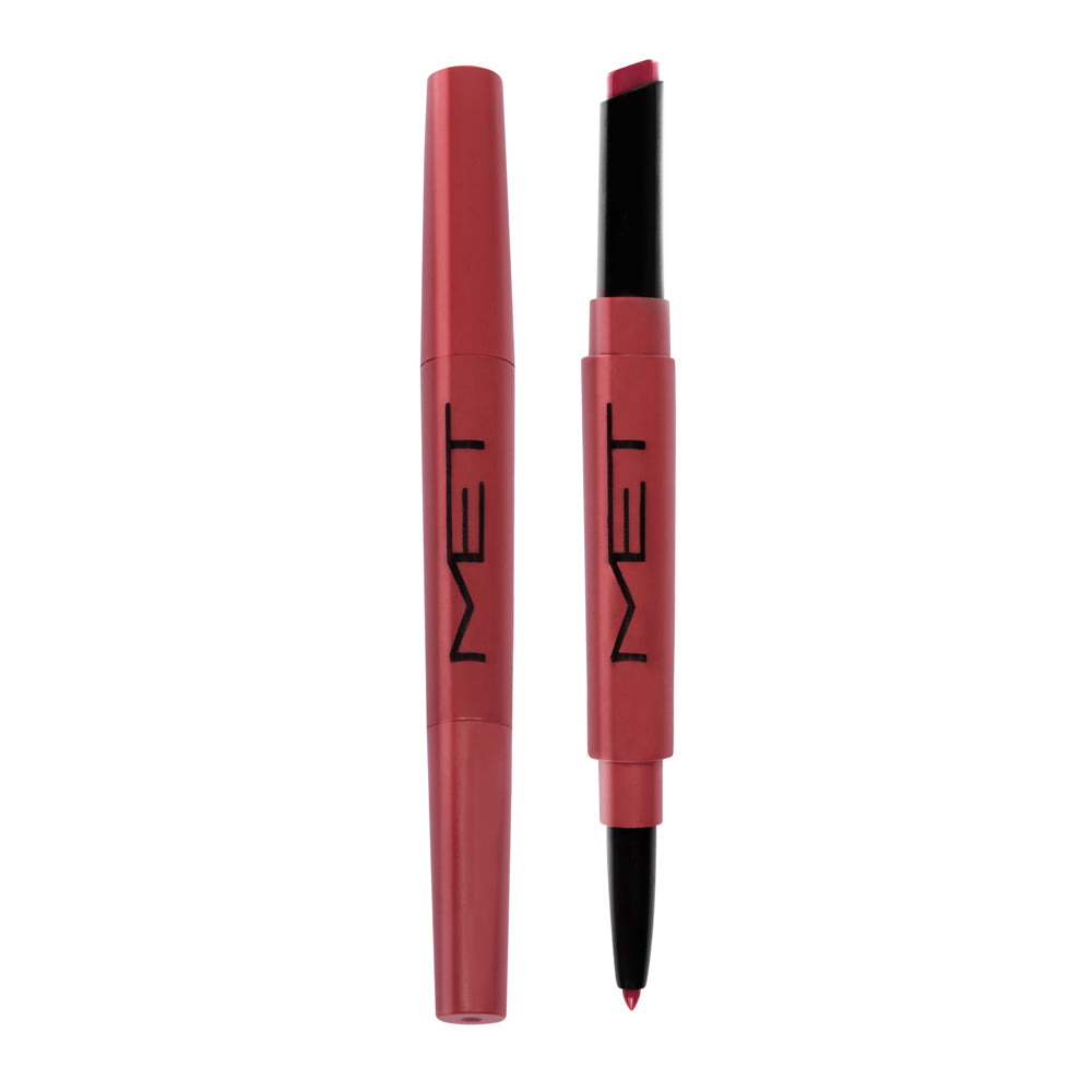 Este labial y delineador de labios 2 en 1 de MET combina una textura suave con un acabado duradero, proporcionando color y definición de manera fácil y eficiente.