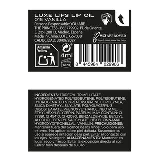 Aceite labial brillante y ligero con aroma a vainilla, cereza o coco.