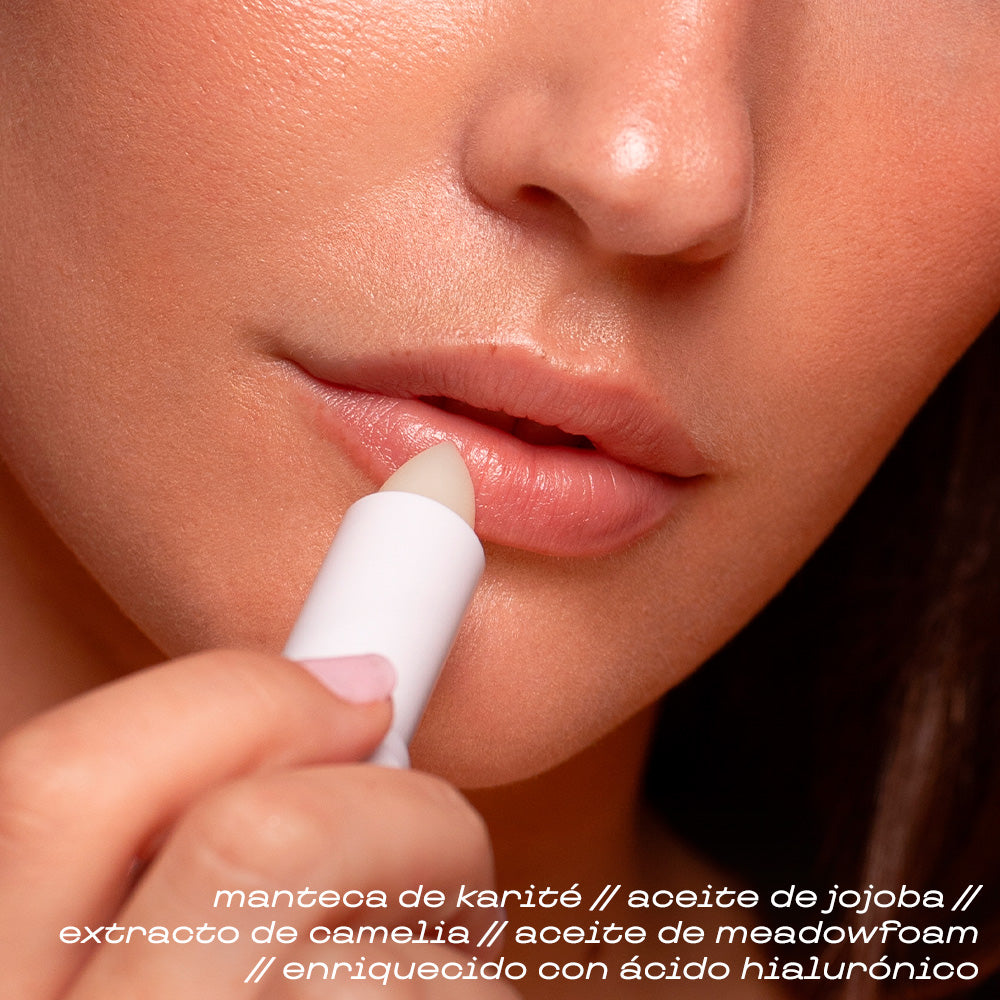 Bálsamo labial nutritivo, hidratante y protector. Con ingredientes naturales como manteca de karité, aceite de jojoba, extracto de camelia y aceite de meadowfoam y  enriquecido con ácido hialurónico para una hidratación profunda. ¡Cuida tus labios y mima los de tu peque!