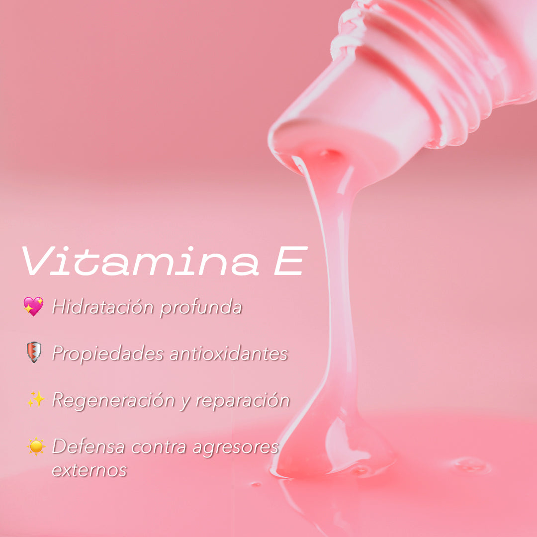 La vitamina E aporta hidratación, protección antioxidante y ayuda a reparar labios agrietados, defendiendo contra agresores externos. El aceite de oliva, rico en ácidos grasos y polifenoles, nutre en profundidad, regenera y deja un brillo natural con una textura sedosa. Por su parte, el aceite de ricino intensifica el brillo, retiene la humedad y prolonga la duración del gloss, proporcionando un acabado jugoso y confortable.