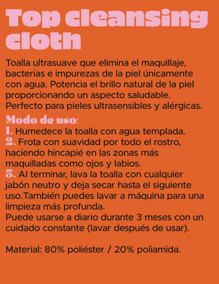 La Must Have Cleansing Cloth es el accesorio imprescindible para tu rutina de limpieza facial. Fabricada en microfibra ultrasuave, elimina maquillaje, impurezas y restos de productos sin necesidad de usar desmaquillantes agresivos. Solo necesitas agua para conseguir una piel limpia, fresca y cuidada.