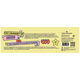 Deja volar tu imaginación y creatividad con las pegatinas Dresses Up de CHI. Este kit incluye una gran variedad de pegatinas con trajes y accesorios perfectos para crear looks divertidos y únicos para cada uno de los amiguitos de Chi. ¡Las posibilidades son infinitas!