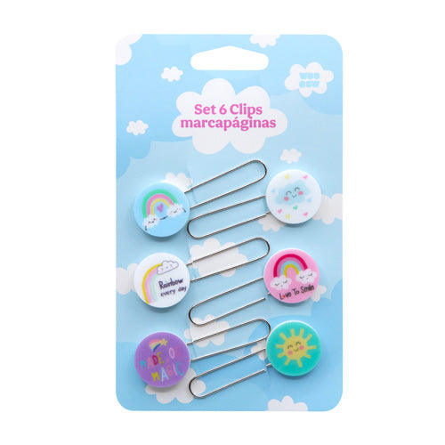 Set de seis clips con diseño y mensajes inspiradores. Fabricados en silicona ideales para usar de marca páginas o agrupar hojas.