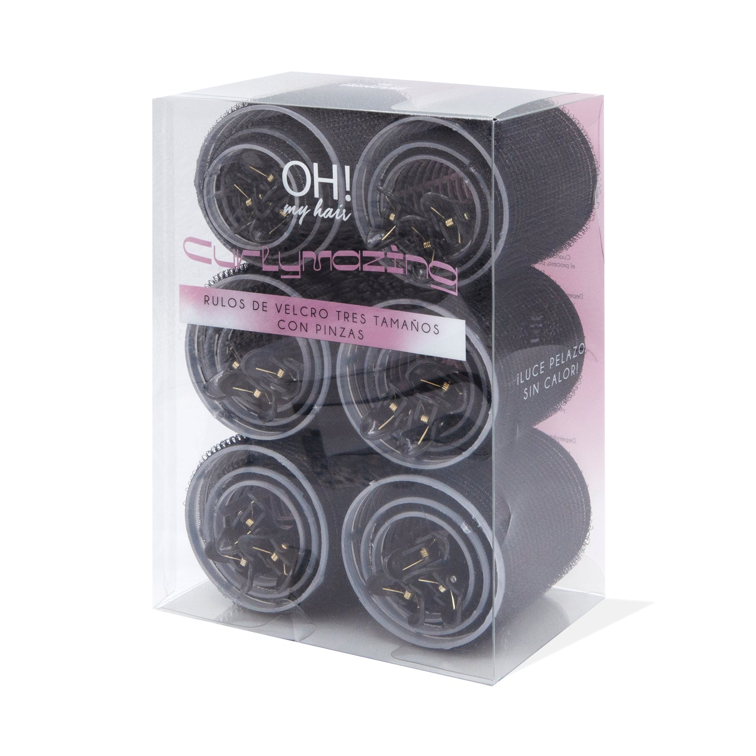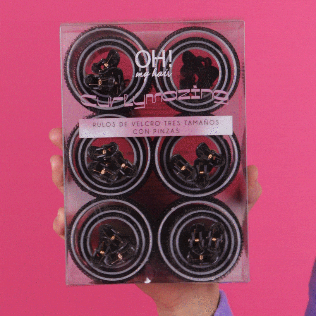 Contiene rulos en tres tamaños y clips de cabello: