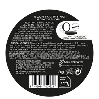 BLUR MATTIFYING POWDER GEL de MET es un polvo fijador versátil. Su fórmula en gel se convierte en polvo fino, controla el sebo y deja la piel sin brillos. Incluye espejo y esponja aplicadora.