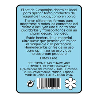 El set de 4 esponjas charm es ideal para aplicar tanto productos de maquillaje fluidos, como en polvo. Tienen diferentes formas para adaptarse a todos los contornos del rostro e incluyen una fundita para guardarlas y transportarlas con un charm decorativo ideal.