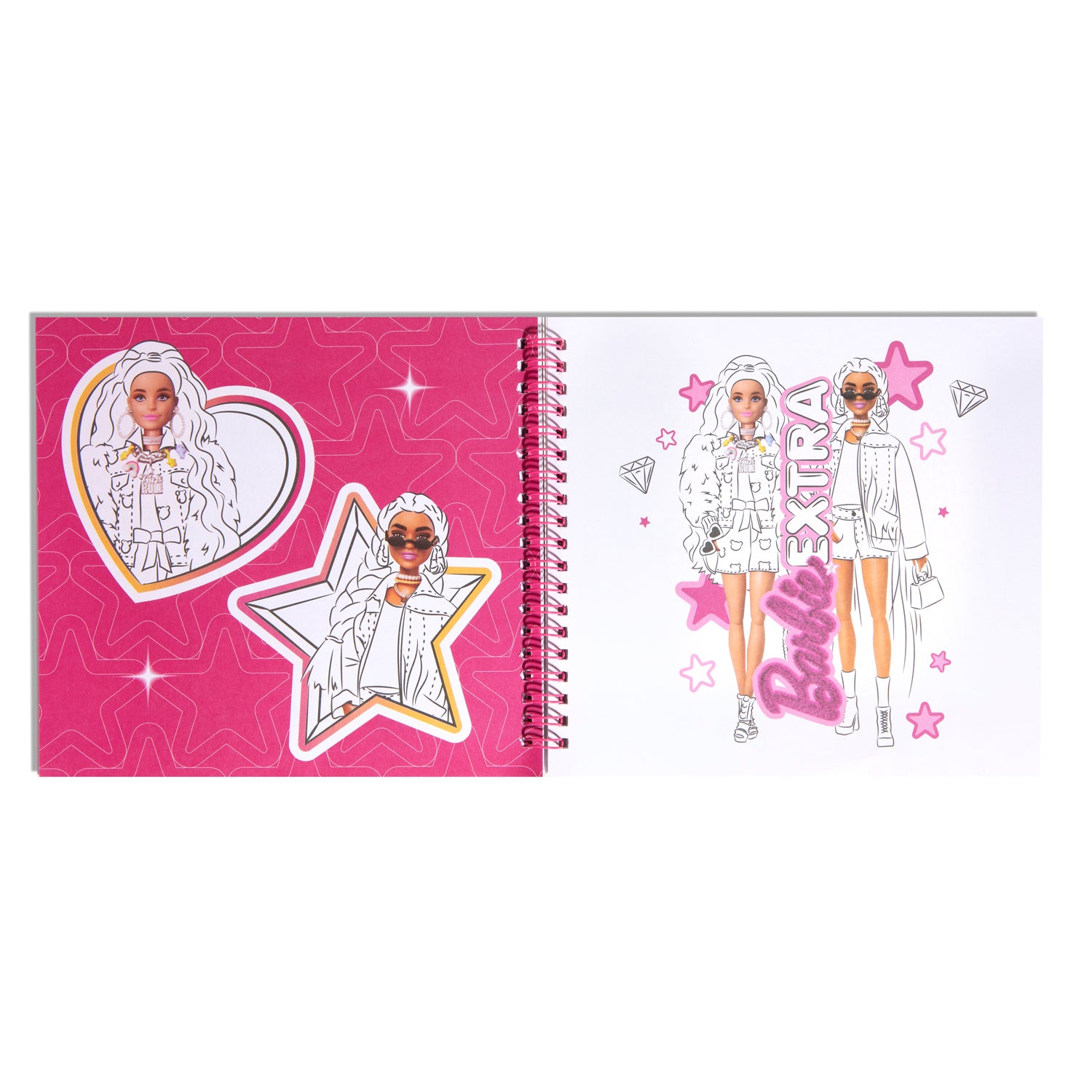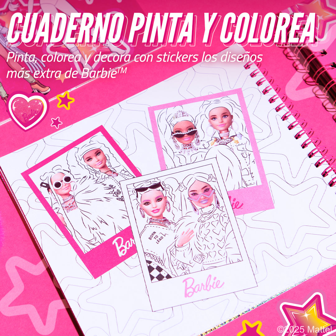 Barbie™ es creativa, apasionada y ¡DISEÑADORA! Si lo tuyo es cear estilismos únicos e innovar con los outfits de tus muñecas, esta libreta de Barbie™ Pinta y Colorea te va a encantar.