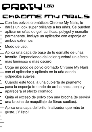 Con los polvos cromáticos Chrome My Nails, le darás un look súper brillante a tus uñas. Se pueden aplicar en uñas de gel, acrílicas, polygel y esmalte permanente.