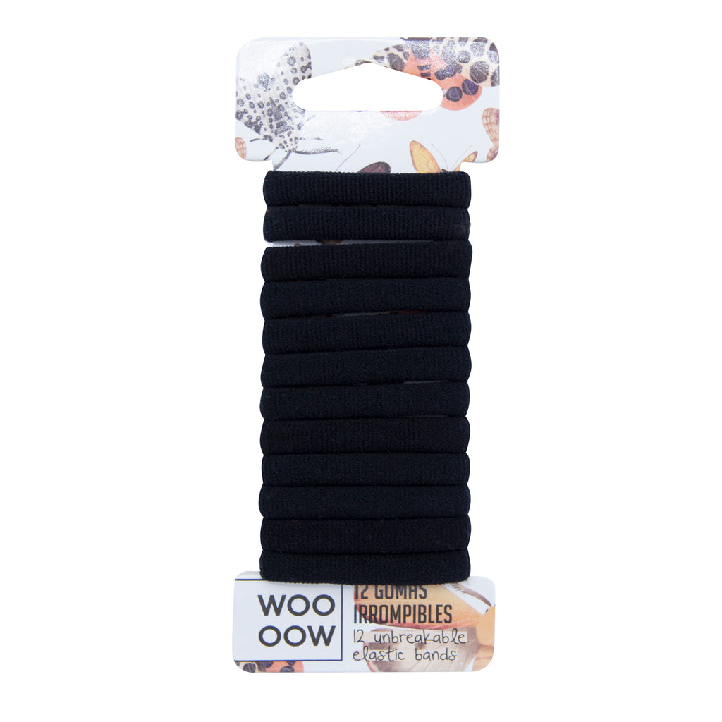 Set de 12 gomas elásticas confeccionadas en nailon, ideales para recoger y mantener tu melena peinada a lo largo de todo el día. Estas gomas elásticas ofrecen una solución práctica y duradera para asegurar tu cabello con estilo.